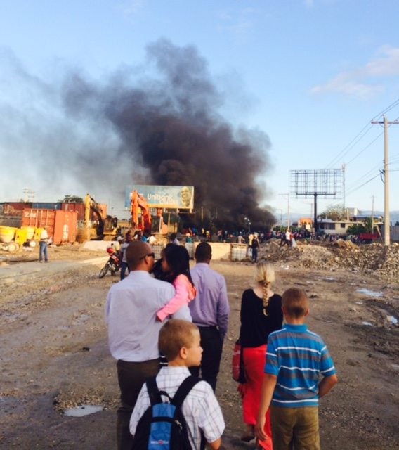 Thankfully, our embassy appointment went really well and as we left, we were glad to see that most of the black smoke and crowds had dissipated so we headed back to where our driver had parked. However, when we neared the riot scene, we saw people running towards us with rags over their faces. Before we knew it, our eyes were instantly burning and we couldn’t breathe. Instinctually we all just turned back towards the embassy and began to run away as we simultaneously heard someone yell something about “poisonous gas”. Apparently the local police threw some type of tear gas on the fires to make the protestors stop. Our guide called our driver and he picked us up there… as he swung into the parking lot and unlocked the doors for us he said, “Welcome to Haiti!”. We all just laughed. We really weren’t too worried at any point because our guide was so calm and cool about the whole thing that we thought he must do this all the time. However, he let us know that we were the first family this has ever happened to and in fact, this was the first time he’s ever gone through a riot! Our big kids thought it was an exciting adventure… especially the tear gas… and we have certainly had a few laughs about it since!