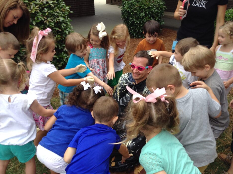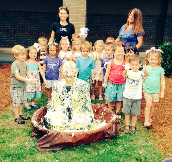 The following week, the preschool director and associate director sent out a letter to the parents with information from Lifeline about the China Foster Center and had an informational video playing about the center on loop for the kids and parents to see each morning as they came in. They made a table with fliers about China and the orphan crisis there and the needs of the foster center. Each class had a jar for the kids to put their money in as they came to school each morning. Also, at the beginning of the week, I met the kids for a brief assembly where I spoke to them about where China was, who orphans are, and what their lives are like. We then shared how even though they were just little boys and girls themselves, God could use them to help out these children in China who don’t have moms or dads and a lot of nice stuff like they do. We also gave the kids some incentive – the class who brought the most money and the end of the two weeks got the chance to turn me into a lemon pie!